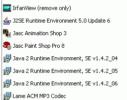 •    Click once on any item listing J2SE or Java Runtime Environment in the name.  (Not every version of Java will begin with "Java" so be sure to read each entry in the list)